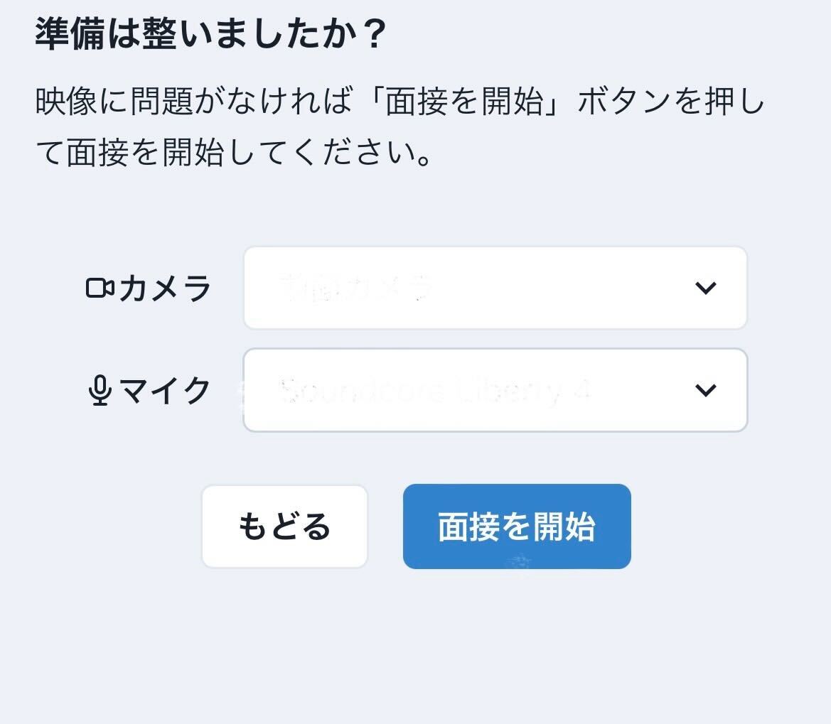 面接を受けられるよう、カメラ位置の調整とマイク・カメラの権限を許可してください。