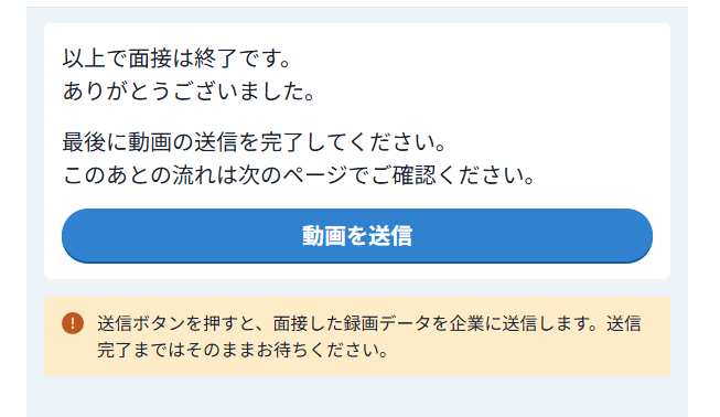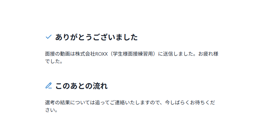 下記の画面が表示されれば、「Zキャリア AI面接官」の実施は完了となります。