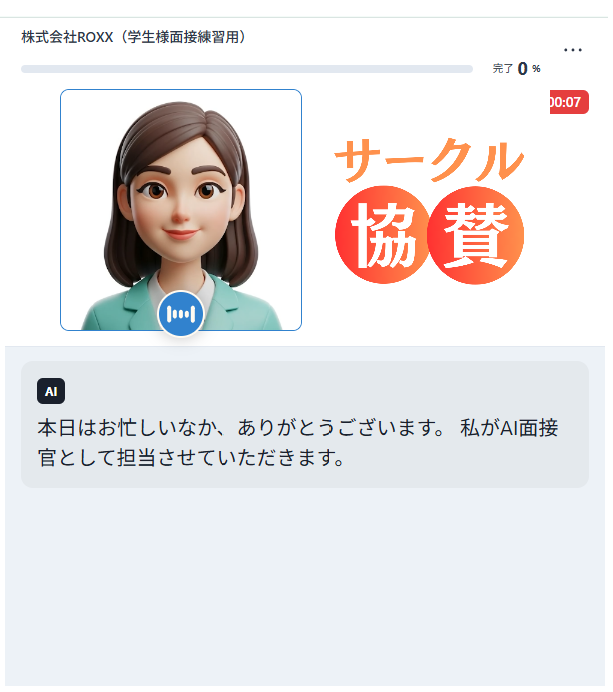 ・画面に登場する「AI面接官」と模擬面接を実施(約10分)