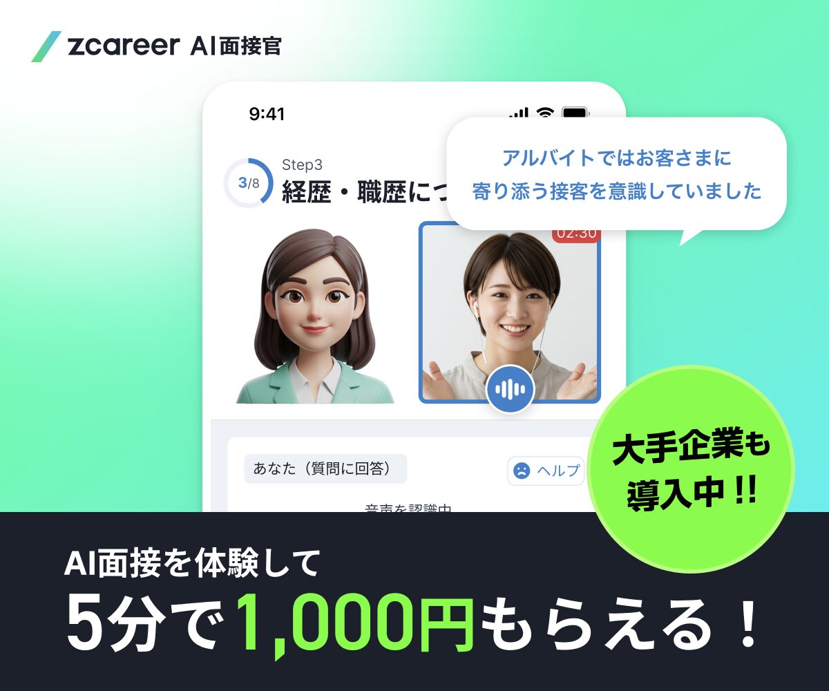 私たちは、24時間いつでも面接できる「Zキャリア AI面接官」というサービスを運営しています。