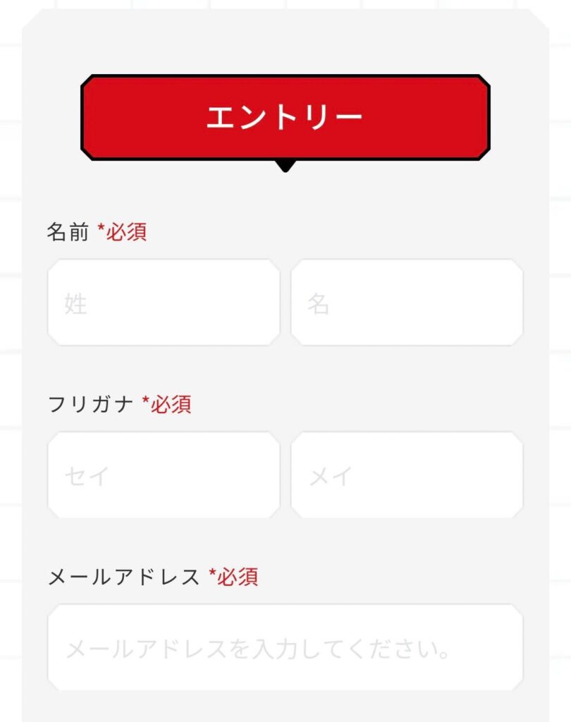 ページの下部に移動し、エントリーの欄に氏名や大学名、電話番号などの項目を入力します。