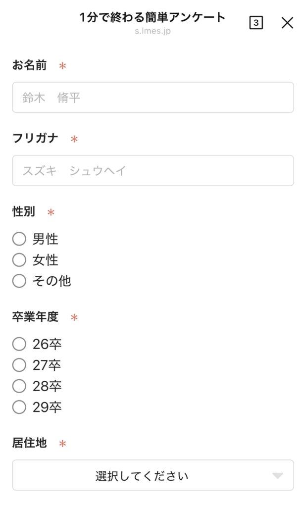 追加後に届くメッセージより「アンケートに回答する」をタップして、記入をお願いします。