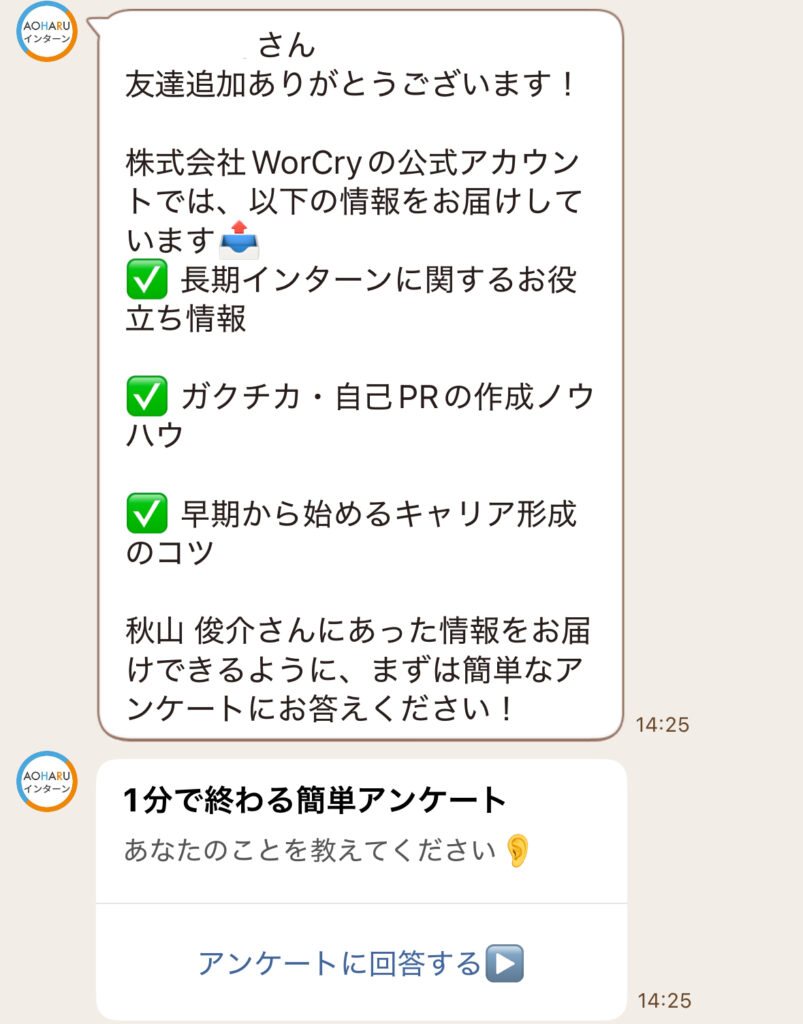 回答が完了すれば「AOHARUインターン」の協賛プロジェクトは完了です。