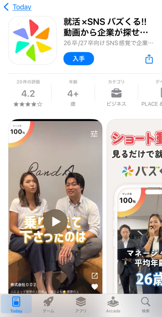 『バズくる!!』では動画を見るだけで就職活動ができます!