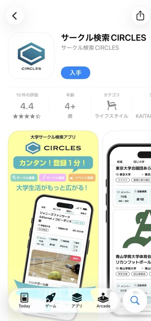 下記のURLから「CIRCLES」のアプリをインストールしてください。