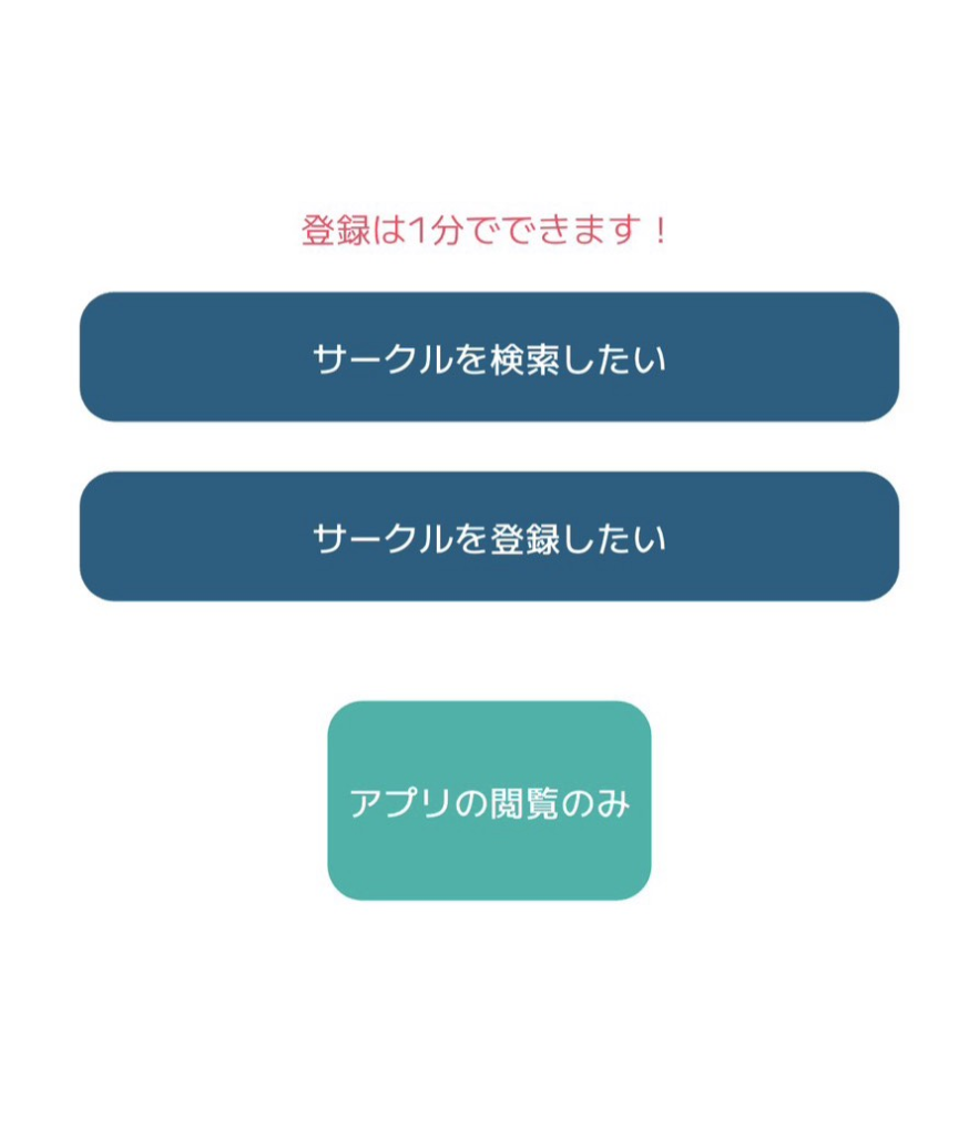 アプリを開き、「サークルを検索したい」をタップしてください。