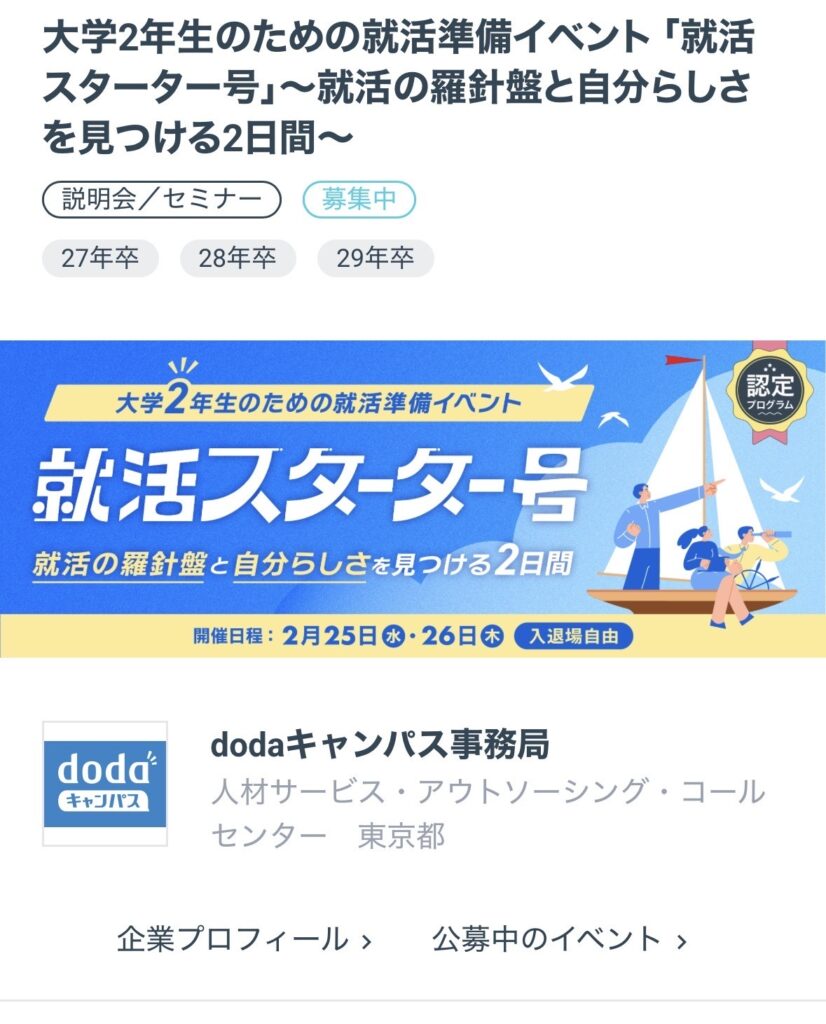 ■既にdodaキャンパスに登録済みの方は否認対象となりますのでご注意ください。