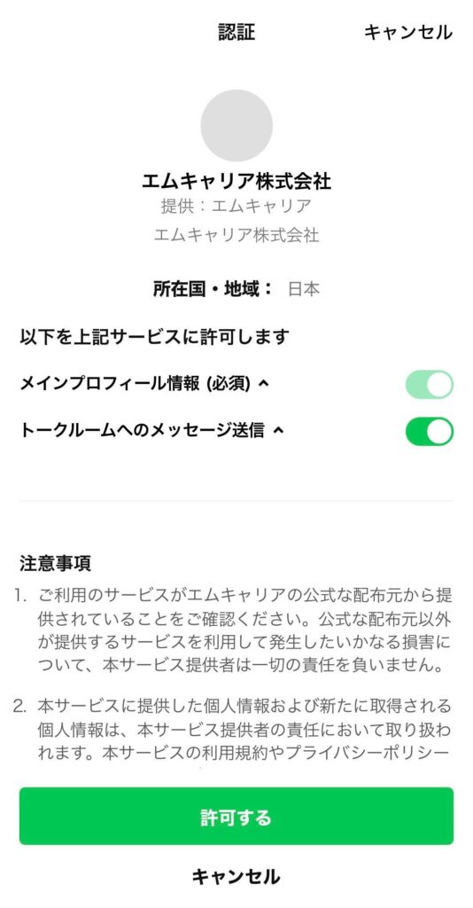 画面が表示されたら、画面下部の「LINEで無料相談する」をタップしてください。