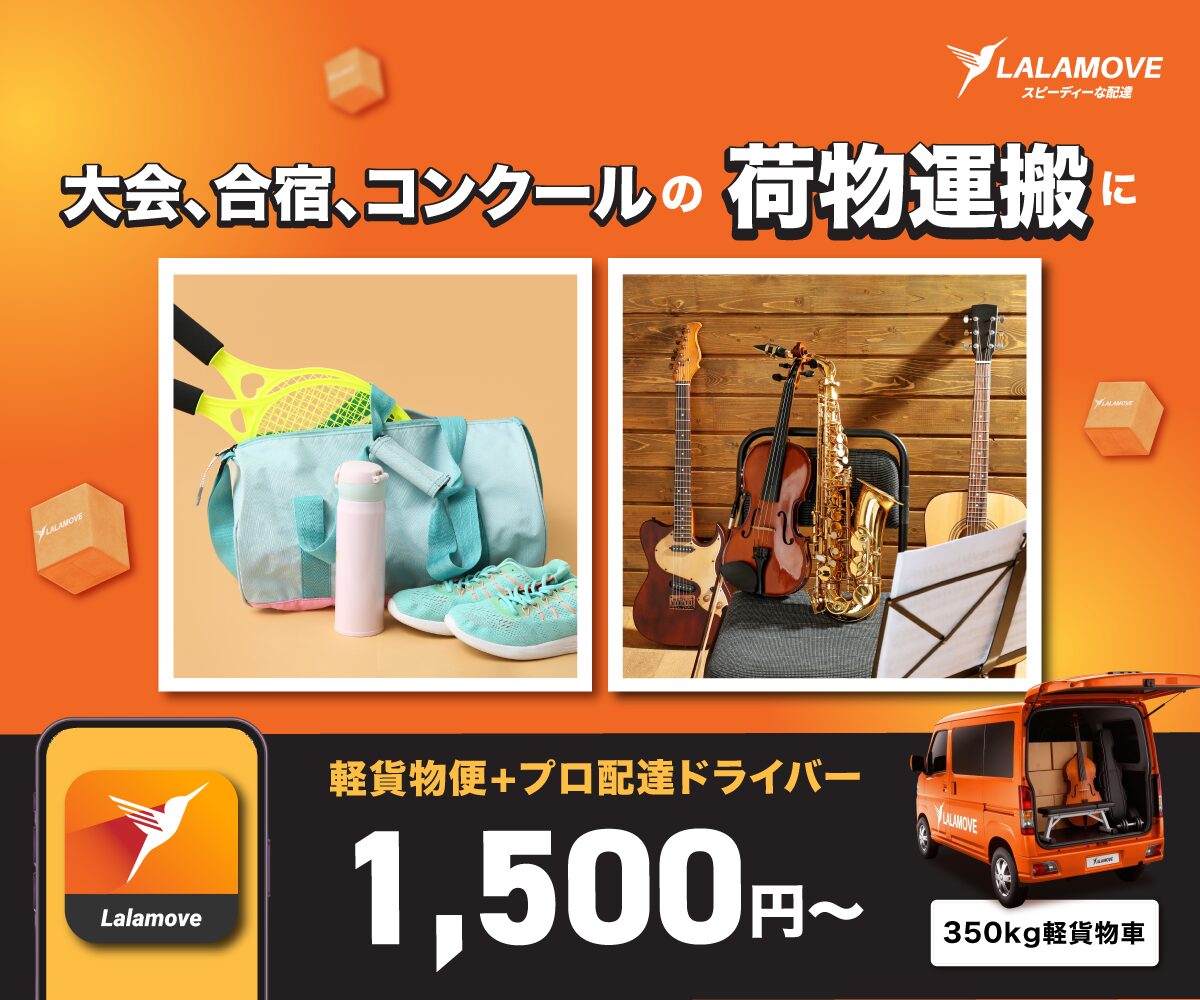Lalamoveは合宿での荷物運搬や大きな荷物の運搬などサークル単位でも個人単位でもさまざまな用途で活用できます!