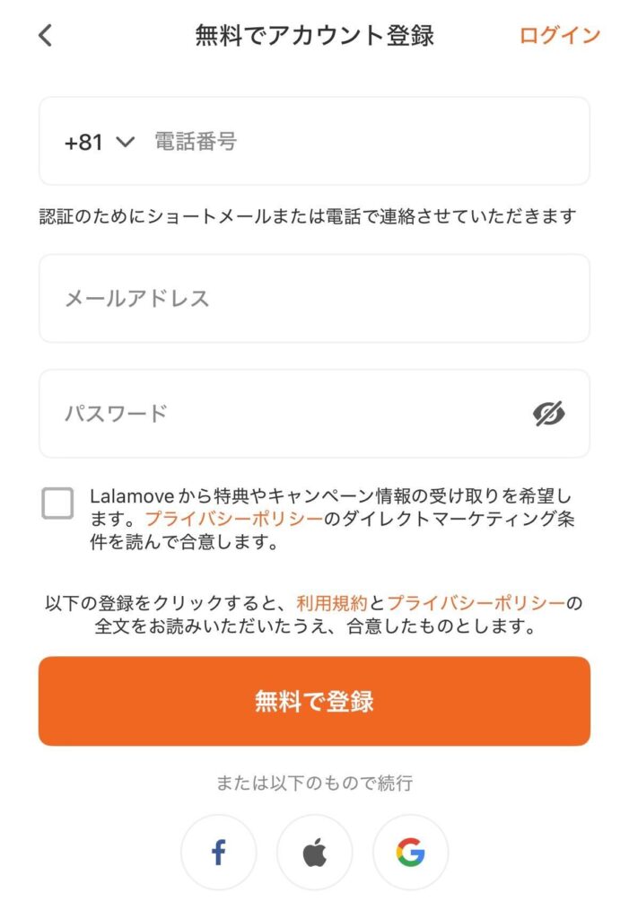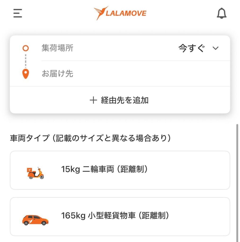 サービスが利用可能な画面まで進めば、「Lalamove」の成果地点①は完了です。