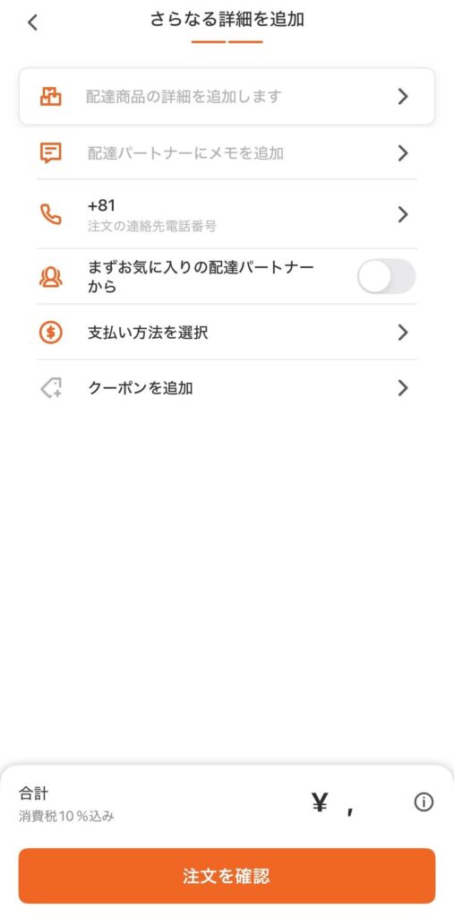 画面下部の「注文を確認」をタップして配達依頼を完了させましょう。
