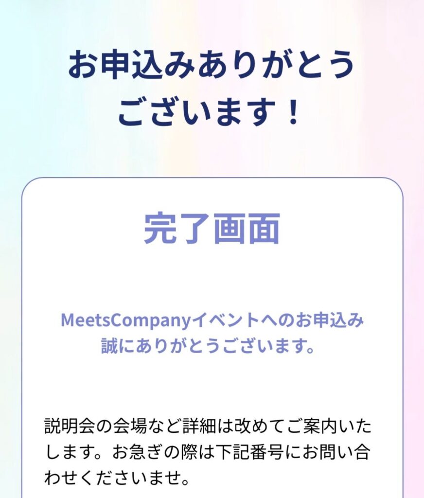 以下のような画面が表示されましたらイベントの応募は完了です!
