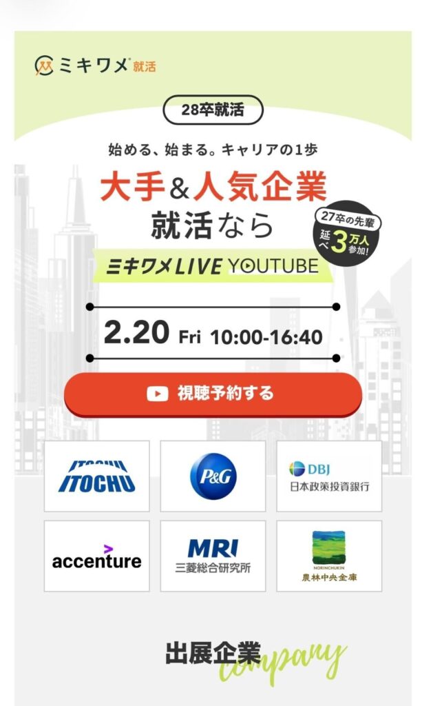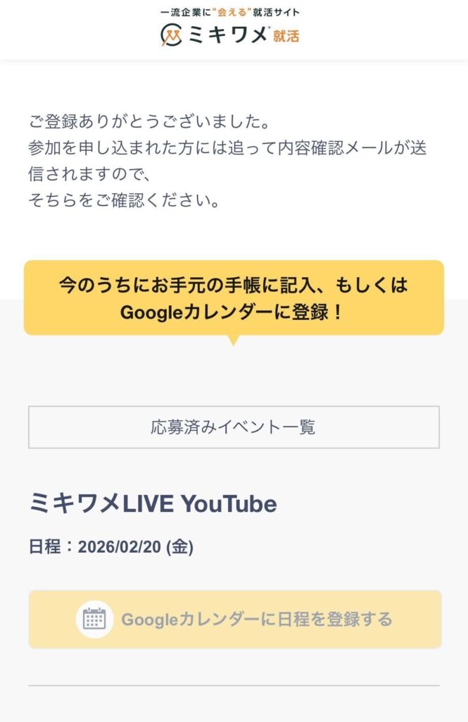 まだミキワメ就活の会員登録を行っていない方は登録をお願いします!
