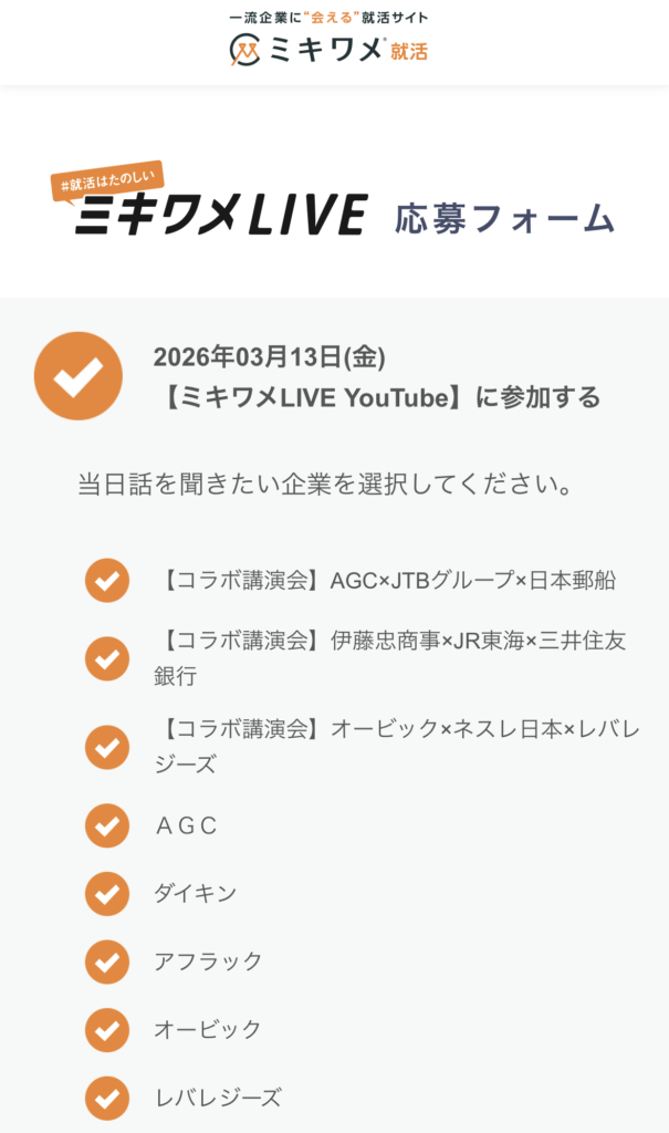 まだミキワメ就活の会員登録を行っていない方は登録をお願いします!