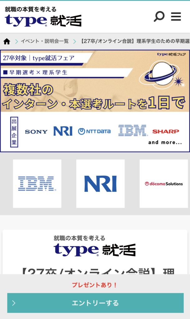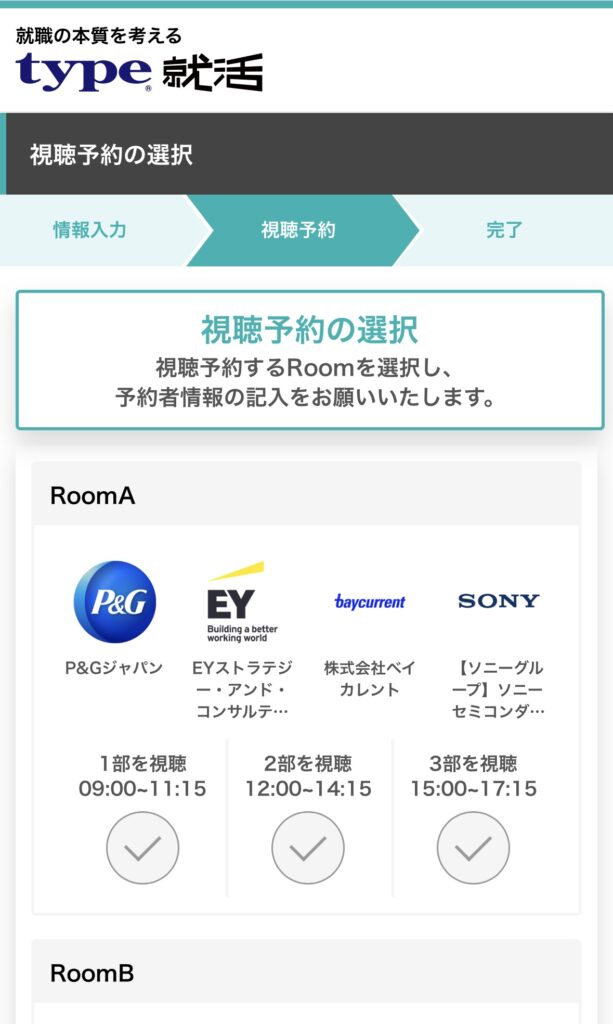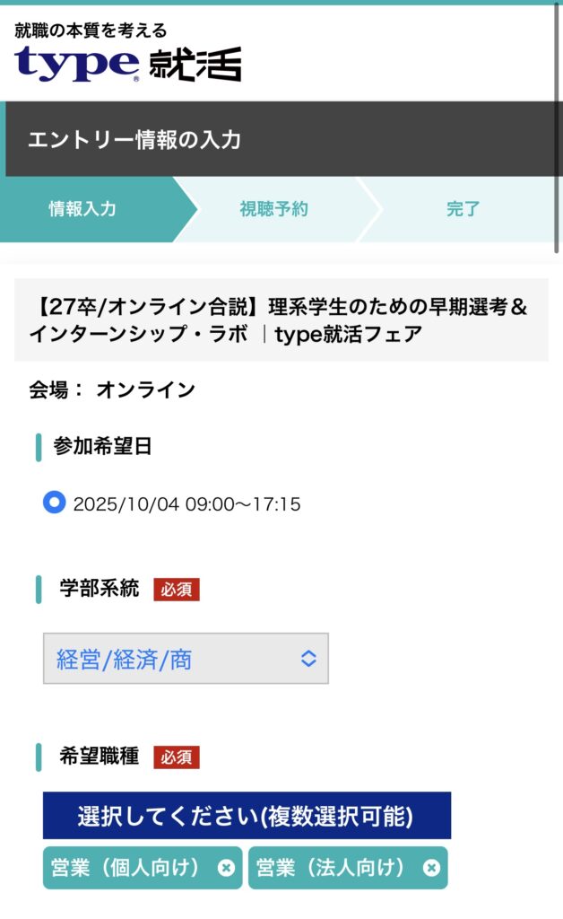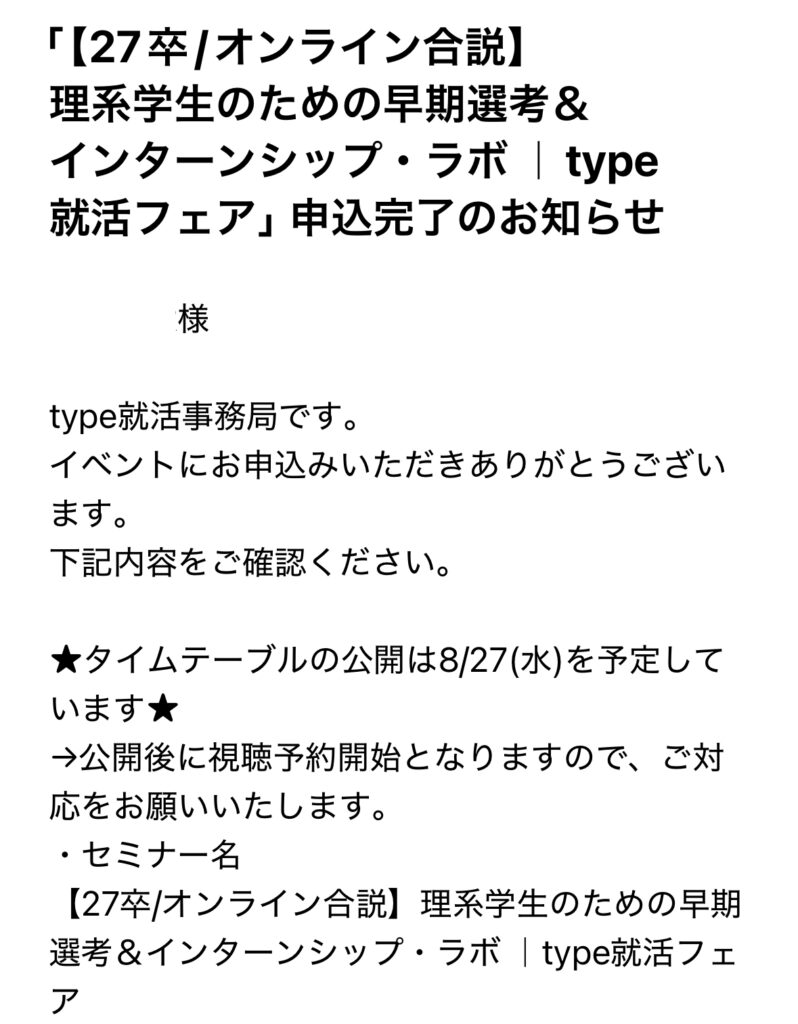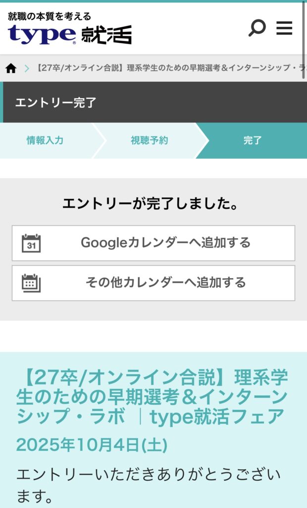 以上で「type就活」のイベント申し込みは完了です。