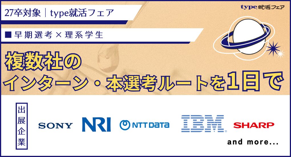【27卒/オンライン合説】理系学生のための早期選考&インターンシップ・ラボ |type就活フェア