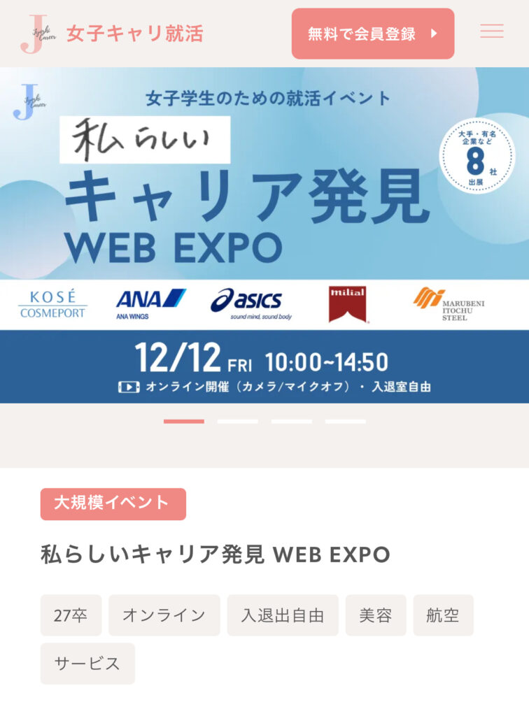 12月開催【27卒女子学生イベント】私らしいキャリア発見 WEB EXPO